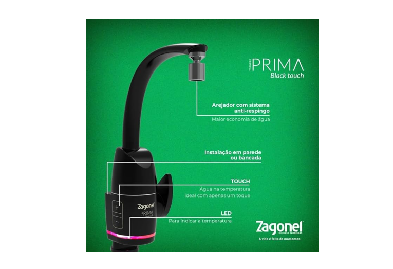 - Tecnologia Touch: Água na temperatura ideal com um toque.